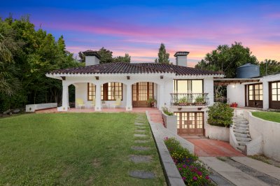 La casa principal tiene un amplio living-comedor orientado hacia el frente del terreno, con estar propio y bar con barra, todo sumergido en un techo alto que le brinda más importancia al lugar y al espacio. Este espacio fue pensado para recibir a la familia, por lo cual cuenta con una comoda distribución, estufa a leña y Aire Acondicionado. Semi conectada se encuentra la cocina, totalmente reciclada con muebles BOSCH, y salida propia al patio trasero. Desde aquí hay una escalera que nos dirige al subsuelo o garage de la casa. A través de un largo pasillo nos conectamos con los dormitorios, que se encuentran alejados del Living-comedor. En total son tres dormitorios, dos baños (uno en suite) reciclados mas dependencia de servicio con baño propio, total 4 dormitorios y 3 baños. Todos los dormitorios con placares empotrados de gran profundidad (la carpinteria esta en excelente estado), equipados con Aire Acondicionado. Es importante destacar, que el baño del dormitorio principal es muy cómodo, con ducha y gran hidromasaje.