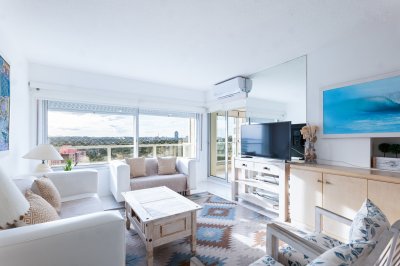 Este apartamento ubicado en la Torre Madison, cuenta con 120 m2 totales distribuidos en un amplio living-comedor desde donde se accede una terraza balcón cerrada, todo orientado hacia el NorOeste con vista a Punta Ballena (ideal para vivir todo el año), 2 dormitorios en suite, ambos con excelentes vistas y placares empotrados, dependencia de servicio con baño, toilette, cocina definida con comedor diario y lavadero.